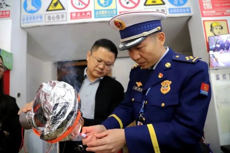 檢查人員秉乘著認(rèn)真仔細(xì),一驗(yàn)到底的工作作風(fēng),當(dāng)場要求打開一個(gè)消防呼吸面罩進(jìn)行點(diǎn)火測試。