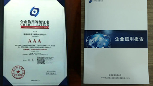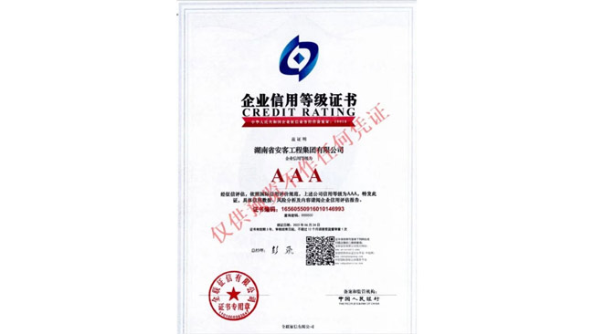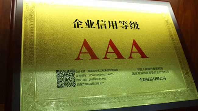 在今年的全國(guó)征信評(píng)定活動(dòng)中,湖南省安客工程集團(tuán)有限公司又一次脫穎而出,再度榮冠成為2022年度“企業(yè)信用等級(jí)3A”企業(yè),為集團(tuán)品質(zhì)品牌升級(jí)邁向新的高度,凝聚更多力量,注入更多動(dòng)能。